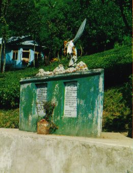 <ダージリンの茶園の中に建てられた、GNLF運動で落命した活動家の顕彰碑>