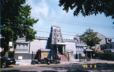 <ニューヨーク、クイーンズのヒンドゥー寺院。近所には他にも何件かのヒンドゥー寺院とシク教センターがあるが、特にインド人が集中して住んでいるわけではない>